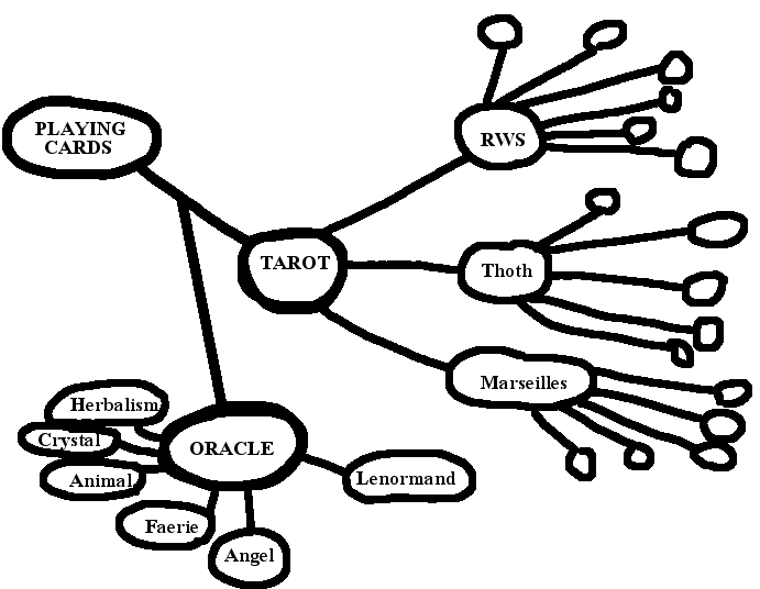 We can think of Tarot as a language family. There’s an old history of playing cards which evolved into Tarot and Oracle cards. Tarot evolved into Marseilles, RWS, then Thoth Tarot. These again inspired other decks.