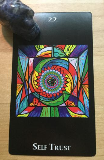 Sodalite is paired here with the Frequency Tarot – which is actually a rather non-traditional deck that strays from the conventional archetypal and major/minor arcana themes. Regardless, The card for you this week matches this skull quite well. As Sodalite does well to boost confidence and intuition, it expresses its message here with ‘Self Trust.’